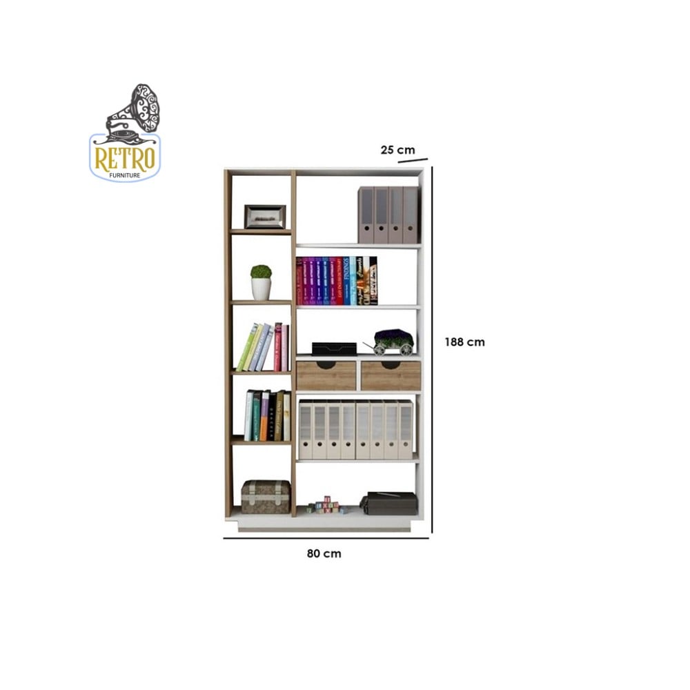 مكتبة مصنوعة من خشب مُصنع اتحاد اوروبي ، تحتوي على عدة أرفف لتضع عليها بعض الديكورات وتحتفظ بكتبك ايضًا بشكل مرتب ومظهر جميل.الخامات:خشب MDFالمقاسات:العرض 80سم – الإرتفاع 188سم – العمق 25سماللون:أبيض×خشبي
