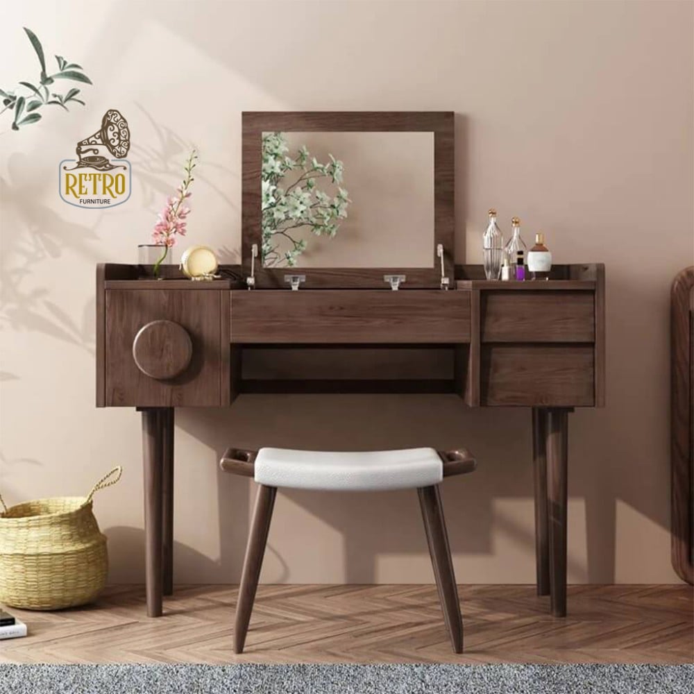 • تسريحة خشبية بمرأة وأدراج للتخزين مصنوعة من خشب مُصنع اتحاد اوروبي .