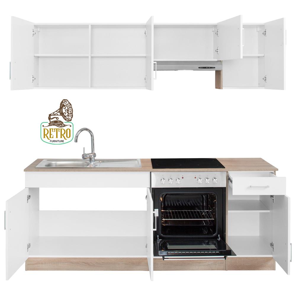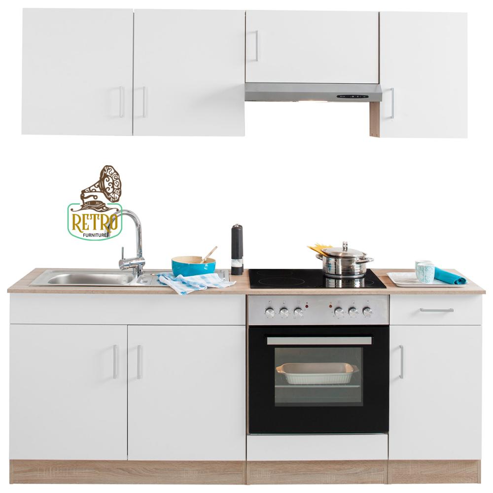 مطبخ أنيق وعملي مكون من جزئين مصنوع من خشب مُصنع اتحاد اوروبي مع قشرة ميلامين و سطح خشب مُصنع.