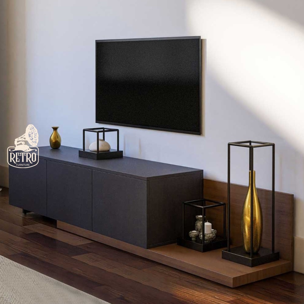 طاولة تلفاز 3 ادراج خشب ام دي اف بني وأسود - 200×40×40 سماللون: بني وأسودالعرض (سم): 200العمق (سم): 40
